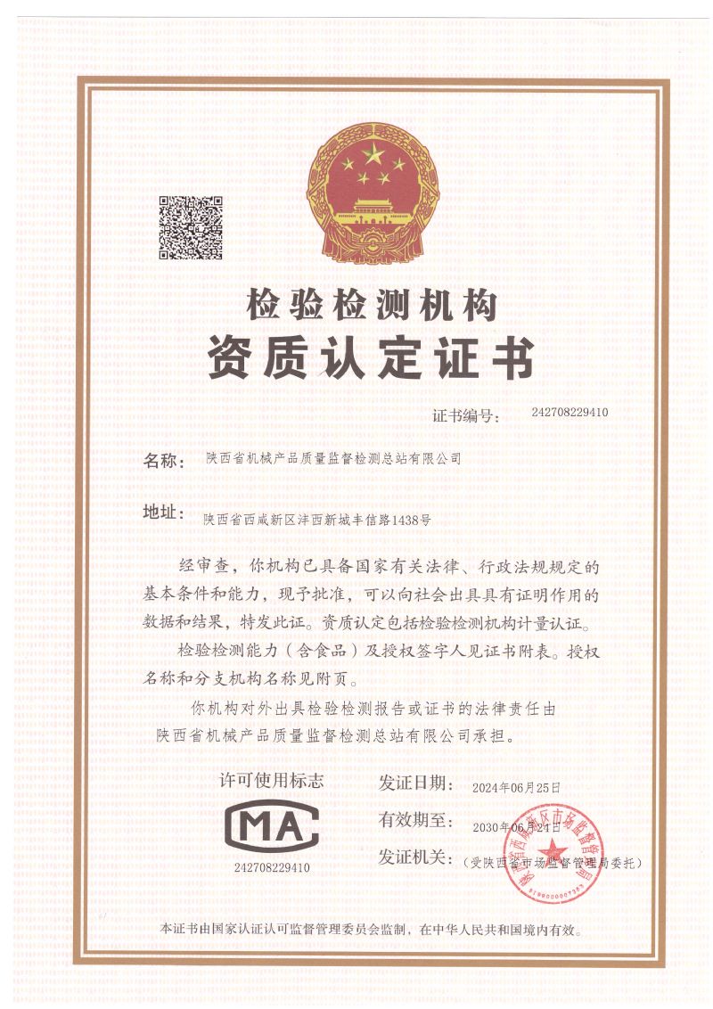 陜西省機械產(chǎn)品質(zhì)量監(jiān)督檢測總站有限公司