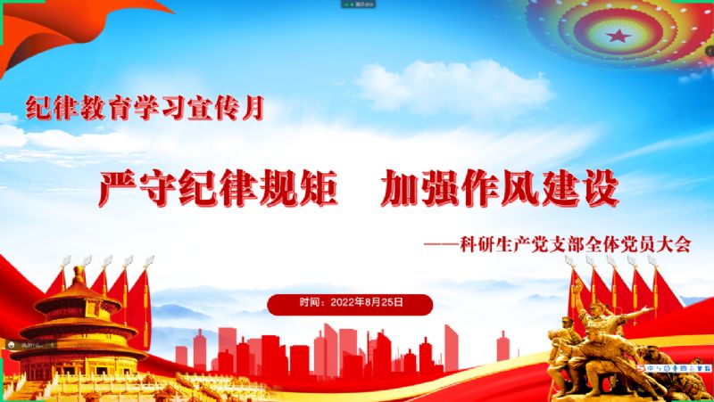 根據(jù)《中共陜西省機(jī)械研究院有限公司委員會“關(guān)于開展‘紀(jì)律教育學(xué)習(xí)宣傳月’活動(dòng)的方案”》相關(guān)要求,2022年8月25日上午10點(diǎn),科研生產(chǎn)黨支部開展以“嚴(yán)守紀(jì)律規(guī)矩,加強(qiáng)作風(fēng)建設(shè)”為主題的線上全體黨員大會,會議由支部書記段偉飛主持。