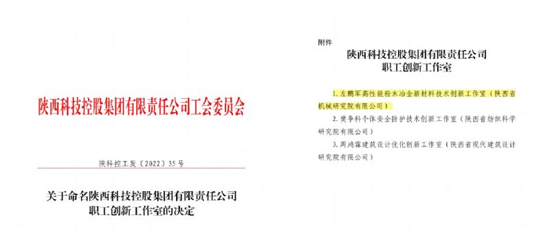 2022年4月,為了激發(fā)廣大職工的創(chuàng)新潛力和創(chuàng)造活力,在公司工會牽頭下,“左鵬軍高性能粉末冶金新材料技術(shù)創(chuàng)新工作室”正式成立。