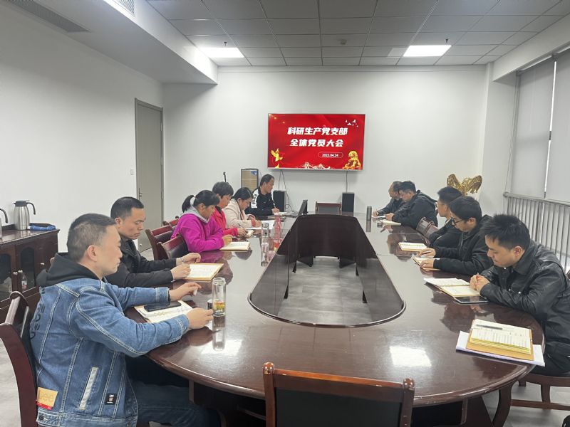2023年04月24日下午,科研生產(chǎn)黨支部在科研樓二樓會議室召開全體黨員大會,會議由支部書記段偉飛主持,支部全體黨員參加。
