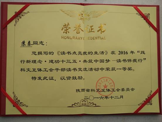 今年來,陜西省科文衛(wèi)體工會(huì)以“踐行新理念•建功十三五•共筑中國(guó)夢(mèng)---讀書伴我行”為主題,在全省科文衛(wèi)體系統(tǒng)廣泛深入組織開展“陜西省科文衛(wèi)體工會(huì)干部讀書交流活動(dòng)”。這是省科技控股集團(tuán)公司成立以來,我院工會(huì)第一次參加省科文衛(wèi)體的活動(dòng),院工會(huì)高度重視,積極響應(yīng),精心安排,組織工會(huì)干部撰寫讀書心得體會(huì)。