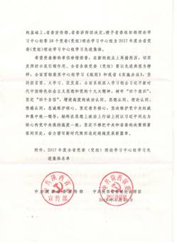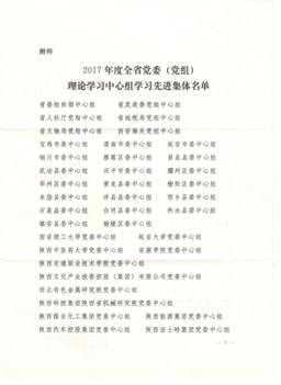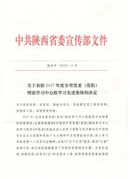 日前,陜西省委宣傳部發(fā)布了《關于表彰2017年度全省黨委(黨組)理論學習中心組學習先進集體的決定》(陜宣字﹝2018﹞11號),院黨委中心組喜獲“先進集體”榮譽稱號。