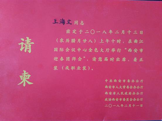 2018年2月13日上午,西安市迎春團(tuán)拜會(huì)在曲江國(guó)際會(huì)議中心隆重召開(kāi),陜西省機(jī)械研究院黨委書(shū)記、院長(zhǎng)王海文作為受邀的九名科技界代表之一參加了本次團(tuán)拜會(huì)。