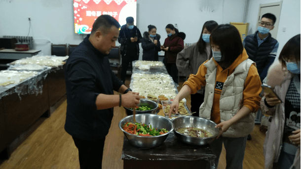 一大早,會(huì)議室熱鬧非凡,儼然變身成了廚房。寒冷的冬天也因志愿者們熱情變得溫暖了起來(lái)。大家分成多個(gè)小組,分工協(xié)作,整個(gè)包餃子過(guò)程,有條不紊,志愿者們一個(gè)個(gè)動(dòng)作嫻熟忙得不亦樂(lè)乎,一家人歡聲笑語(yǔ)不斷,其樂(lè)融融。在大家齊心協(xié)力、攜手合作下,一個(gè)個(gè)獨(dú)具個(gè)性的餃子很快就擺滿了一個(gè)個(gè)盤子。當(dāng)一盤盤熱氣騰騰的餃子端上餐桌,那一個(gè)個(gè)包含著幸福和溫暖的餃子,那濃濃的餃子香,使全體職工暫時(shí)忘卻了冬日的寒意。