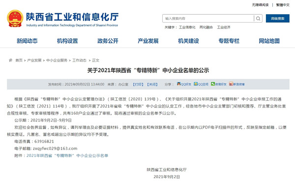 2021年9月2日,陜西省工業(yè)和信息化廳發(fā)布《關(guān)于2021年陜西省“專精特新”中小企業(yè)名單的公示》,我院“陜西華夏粉末冶金有限責(zé)任公司”及省內(nèi)160家企業(yè)榮登榜單。